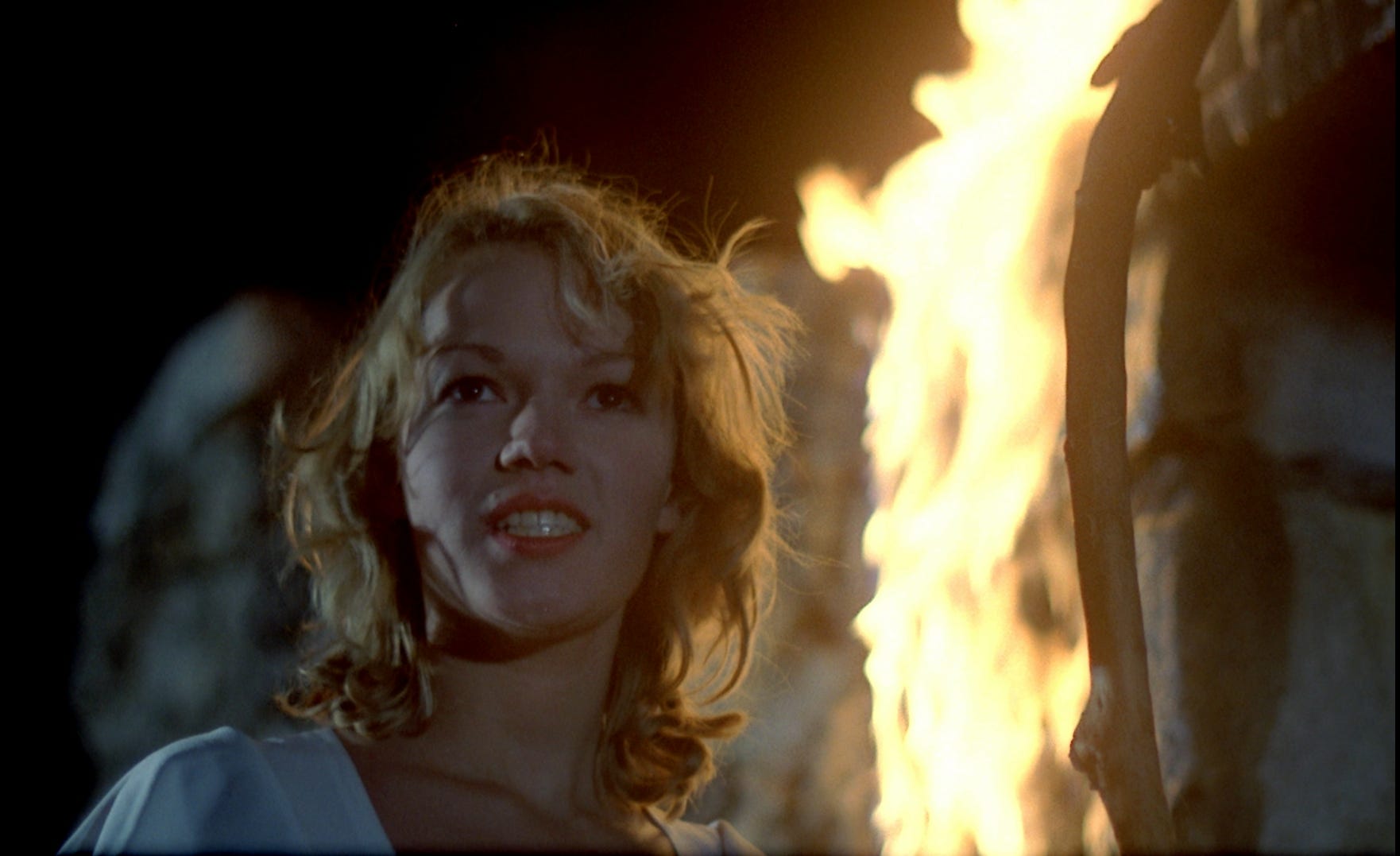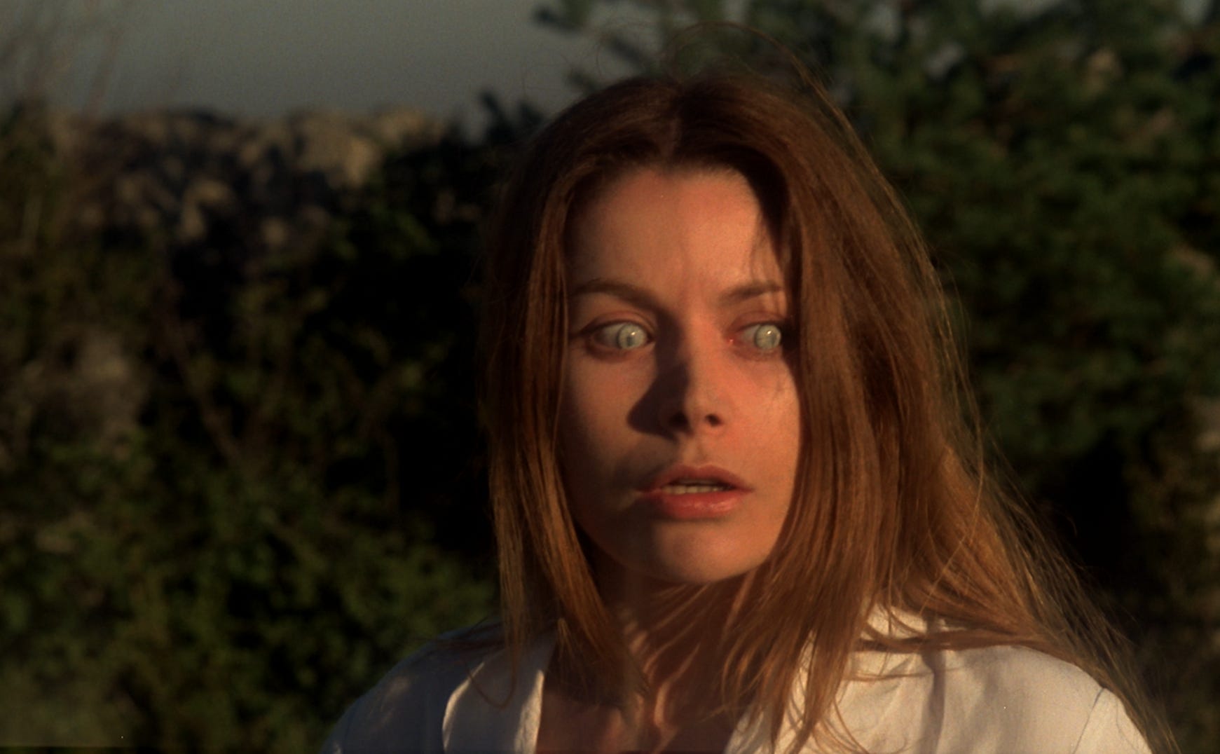 Rollin’s movies are slow and dream-like, helped by their low budgets, locations and splashes of violence and nudity. Most of Rollin’s filmography involves vampires, and The Grapes of Death is an outlier in focusing on zombies, or something like zombies (comparable to George A. Romero’s The Crazies). An experimental pesticide used on a vineyard (hey, this is French zombie movie after all) has an unfortunate side-effect: people are turning into mad killers, with a side order of leaking sores. Travelling to meet her boyfriend, the owner of a winery, Elizabeth is attacked and spends the movie searching for help in an isolated landscape. Along the way, Elizabeth encounters dead bodies, zombie killers and survivors. Two in particular add so much to the film’s vibe, including Mirella Rancelot as a blind girl named Lucie and adult film star Brigette Lahaie as a woman in white.